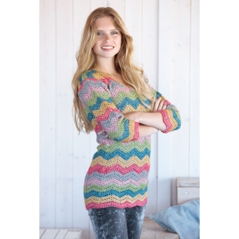 Haakpakket dames trui met 3/4 mouwen van Scheepjeswol. Met dit Stone Washed haakpakket ontvangt u de wol met het haakpatroon.